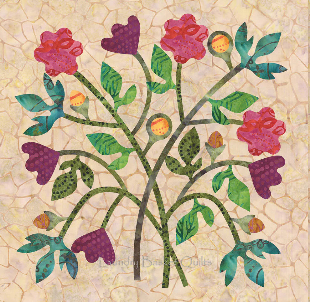 With the permission from Virginia Quilt Museum, I have had the privilege to create beautiful Fabric Silhouette blocks for the Laundry Basket Quilts “Summerfield” Block of the Month Quilt. The majority of the blocks represented in this quilt are reproductions of the 1856 Shenandoah Valley Botanical Album Quilt by Esther B. Matthews. This unique folk art quilt is in the permanent collection of the Virginia Quilt Museum in Harrisonburg, VA. The Virginia Quilt Museum retains copyright of the original quilt and all derivative works. Use of these blocks is for personal use only, and no financial gain can be made by the reproduction or sale of any works inspired by this pattern without the written consent of the Virginia Quilt Museum. The Museum in proud to partner with Edyta on this project