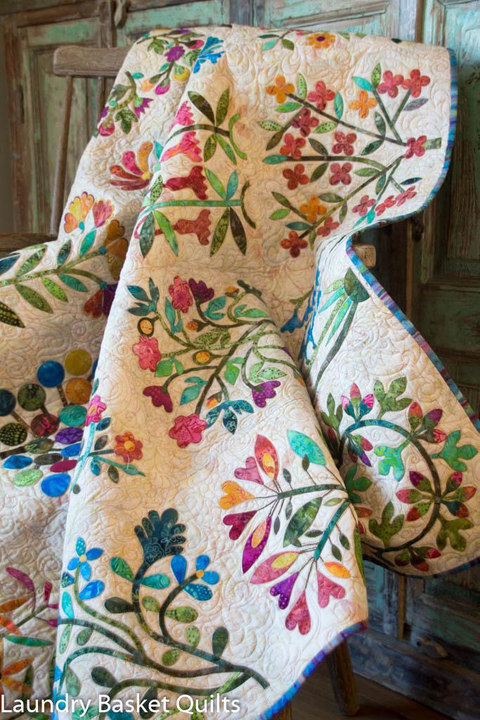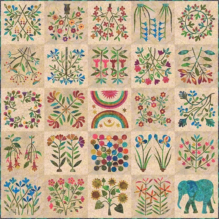 With the permission from Virginia Quilt Museum, I have had the privilege to create beautiful Fabric Silhouette blocks for the Laundry Basket Quilts “Summerfield” Block of the Month Quilt. The majority of the blocks represented in this quilt are reproductions of the 1856 Shenandoah Valley Botanical Album Quilt by Esther B. Matthews. This unique folk art quilt is in the permanent collection of the Virginia Quilt Museum in Harrisonburg, VA. The Virginia Quilt Museum retains copyright of the original quilt and all derivative works. Use of these blocks is for personal use only, and no financial gain can be made by the reproduction or sale of any works inspired by this pattern without the written consent of the Virginia Quilt Museum. The Museum in proud to partner with Edyta on this project