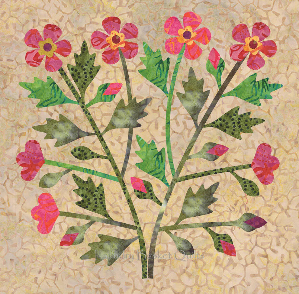 With the permission from Virginia Quilt Museum, I have had the privilege to create beautiful Fabric Silhouette blocks for the Laundry Basket Quilts “Summerfield” Block of the Month Quilt. The majority of the blocks represented in this quilt are reproductions of the 1856 Shenandoah Valley Botanical Album Quilt by Esther B. Matthews. This unique folk art quilt is in the permanent collection of the Virginia Quilt Museum in Harrisonburg, VA. The Virginia Quilt Museum retains copyright of the original quilt and all derivative works. Use of these blocks is for personal use only, and no financial gain can be made by the reproduction or sale of any works inspired by this pattern without the written consent of the Virginia Quilt Museum. The Museum in proud to partner with Edyta on this project